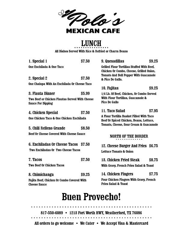 Polo's Mexican Cafe Menu